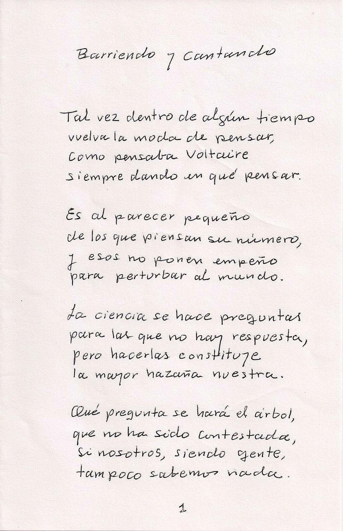 «Barriendo y cantando», fragmento de poema en manuscrito autógrafo