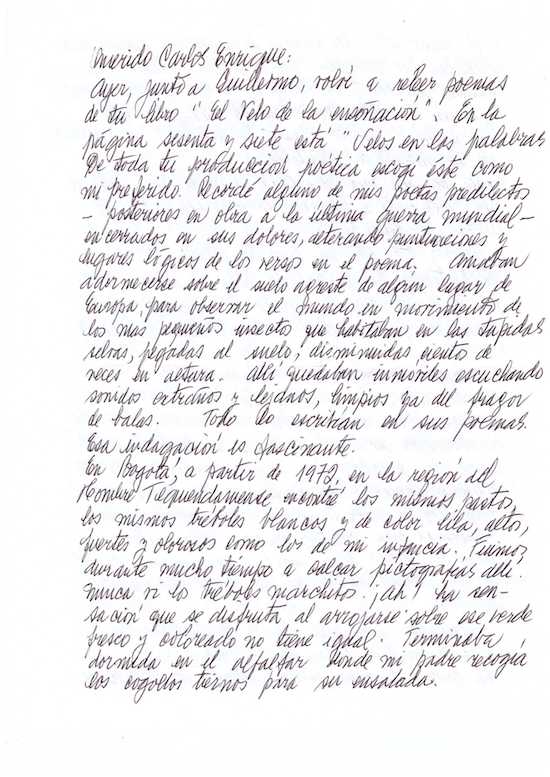 Carta en manuscrito autógrafo (1a. página de 4) – Manizales, Nov. 2010 Por Anielka Gelemur-Rendón Compartir: Publicado en Edición No. 193