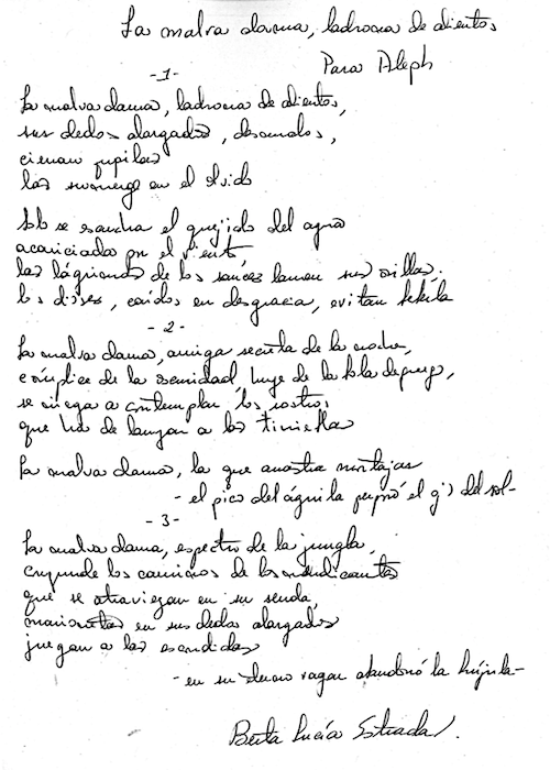 La mala dama, ladrona de alientos /manuscrito autógrafo Por Berta-Lucía Estrada E. Berta-Lucía Estrada E. Compartir: Publicado en Edición No. 188